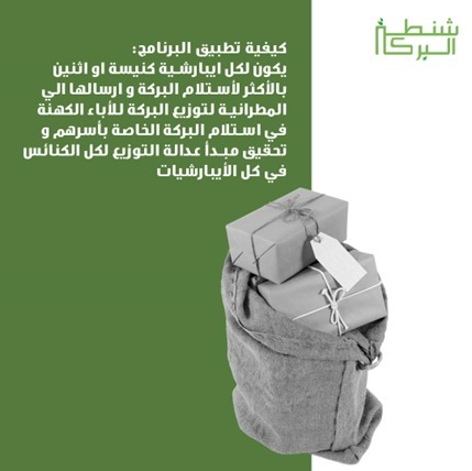 - ترسل الإيبارشية خطاب رسمي بأسماء الكنائس التي ترغب في الإستفادة من هذه الخدمة وبالأخص الأرامل و الأيتام و ذوى الإعاقة